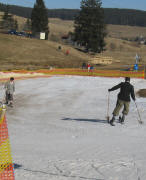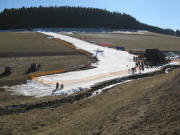 Blick nach Süden zum Skilift an der Schneckenhofmühle am 11.2.2008 um 13 Uhr - Schnee wird angefahren
