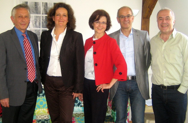 Beim Start der „LEBENS-RÄUME“ waren dabei: Albert Schultis, Sparkasse Freiburg (Projektförderer), Cathrin von Essen, Vorstand der Wilhelm-Oberle-Stiftung und ebenfalls Projektförderer, Brigitte Benzing-Haege als „Erst-Patin“, Hans-Joachim Abstein, Vorstand Arbeitskreis Leben Freiburg e.V. (AKL) und Wolfgang Stich, Einrichtungsleiter des AKL (v.l.).
