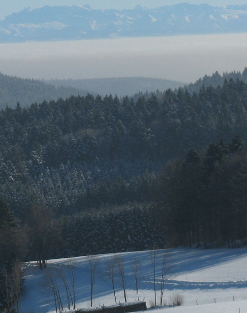 Blick nach Südosten über Staufen zu den Alpen am 9.1.2009