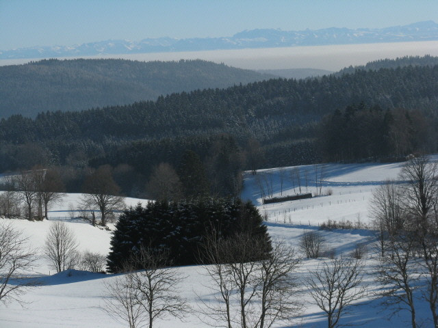 Blick nach Süden über Staufen zu den Alpen am 9.1.2009