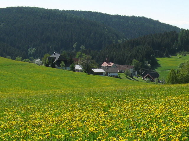 Blick nach Osten zur Nikolauskapelle und Fechtig-Hof in Schönenbach am 9.1.2009) Blick nach Süden zur Kapelle Lanzenfurt im Wald zwischen Schönenbach und Mettma-Tal am 17.5.209