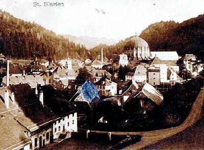 Blasien einst und jetzt", ist auf dem alten Foto vorne links der Meierhof zu