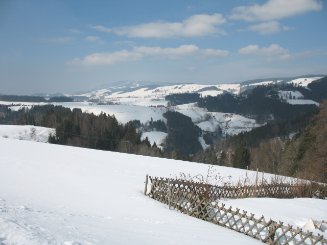 Tele-Blick nach Nordwesten ins Wagensteig zum Hagenhaus am 15.3.2006 Tele-Blick vom Steighof nach Westen zum Eckpeterhof am Lindenberg am 15.3.2006 Blick vom Steighof nach Nordwesten über Schweigbrunnen und Wagensteigtal zum Zweriberg bis hin zum Kandel am 11.5.2008
