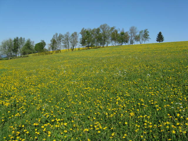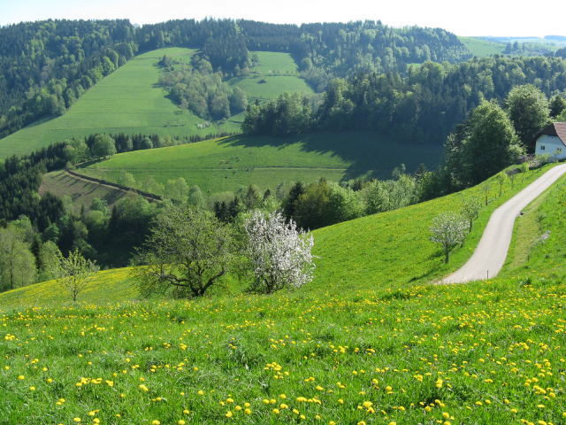 Blick vom Steighof nach Nordwesten über Schweigbrunnen und Wagensteigtal zum Zweriberg bis hin zum Kandel am 11.5.2008 Traumblick nach Nordwesten über Rotenbauernhof und Metzgershäusle (links) nach St. Peter und zum Kandel am 11.5.2008 Beim Steigweg am 11.5.2008: gelb blühender Löwenzahn wohin man blickt