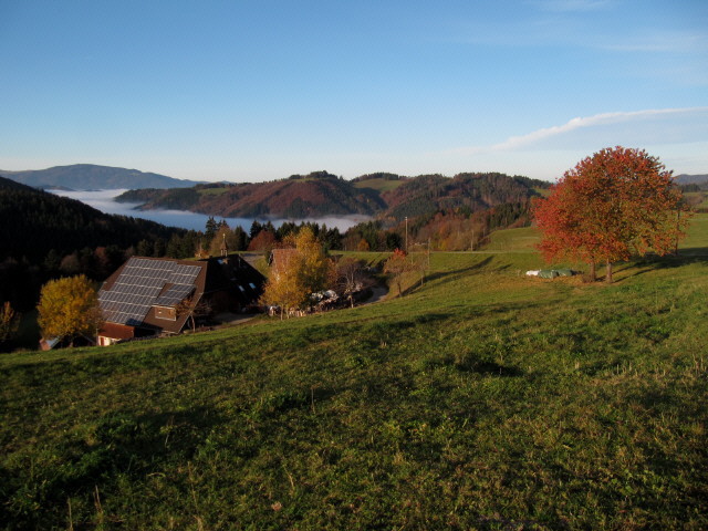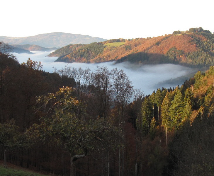 Am 11.11.2011 morgens um 9 Uhr: Im Dreisamtal bis Buchenbach und Wagensteig dichter Nebel und Kälte um die 4 Grad. Auf der Steig hingegen bereits kurz nach Sonnenaufgang deutlich über 10 Grad warm, Sonne, Windstille und traumhafte Sicht über "die da unten" im Nebelmeer.