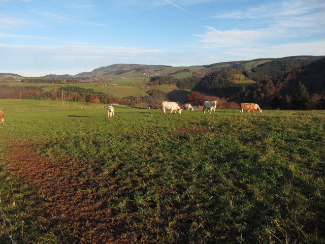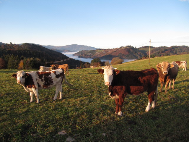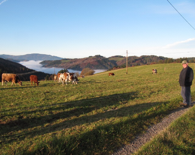 Auf der Steig am 11.11.1011: Der Bulle hats gut Auf der Steig am 11.11.1011: Nebel im Tal Auf der Steig am 11.11.1011: Blick nach Westen zum Rotenbauernhof