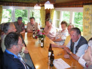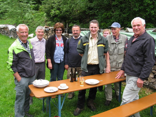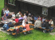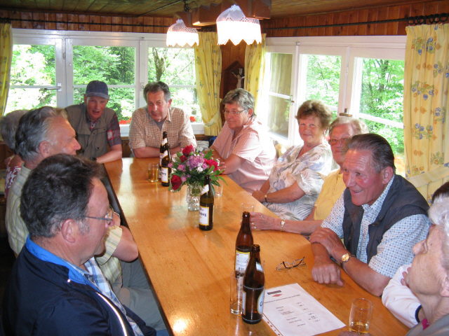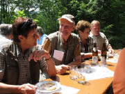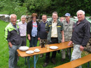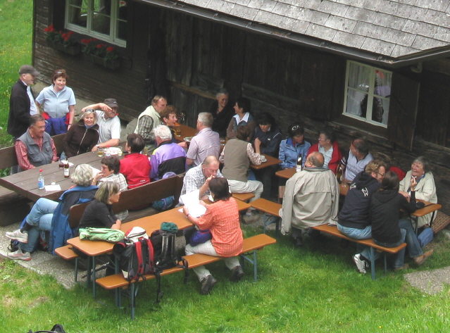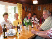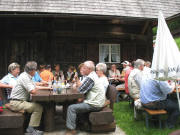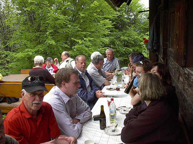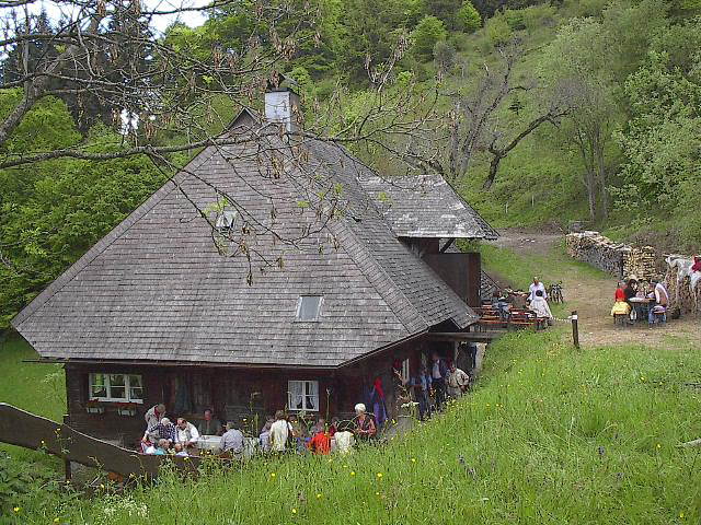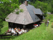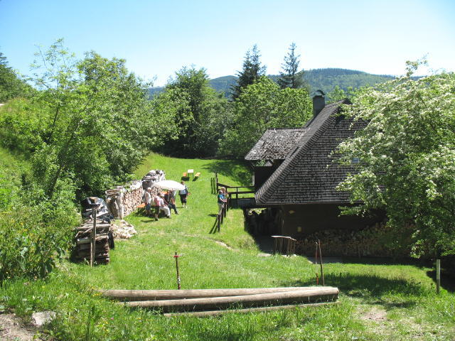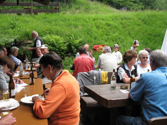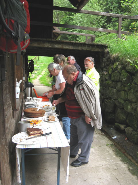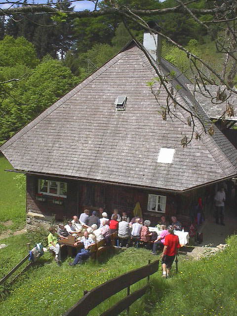 Familienwanderung zum Jockeleshäusle am 3.6.2007 Nach mehreren Regentagen und Kälte meint es der Wettergott wieder mal gut mit uns: Ideales Wanderwetter mit Sonne und Wolken, fabei gar nicht mehr kalt. Super Essen mit Menü 1 und Menü 2 zur Auswahl, dann Kaffee und Kuchen: Erdbeere, Rhabarber, Zopf, Himbeerrolle und vor allem der sagenhafte Feuerwehrkuchen von Lissy. Dazu ein Traumblick übers Zastler in Richtung Oberried bis zum Schauinsland, Lupinen und Fingerhut rings um, neu gestrichene Tische und Bänke, Getränkeservice vorort, der stetig plätschernde Brunnen und lauter nette Leute.