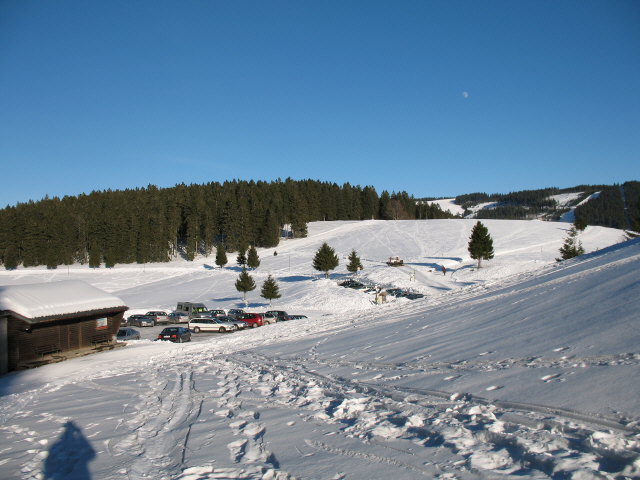 Blick nach Norden über Wanderparkplatz und Radschert zu den Höhen des Stübenwasen am 10.1.2006