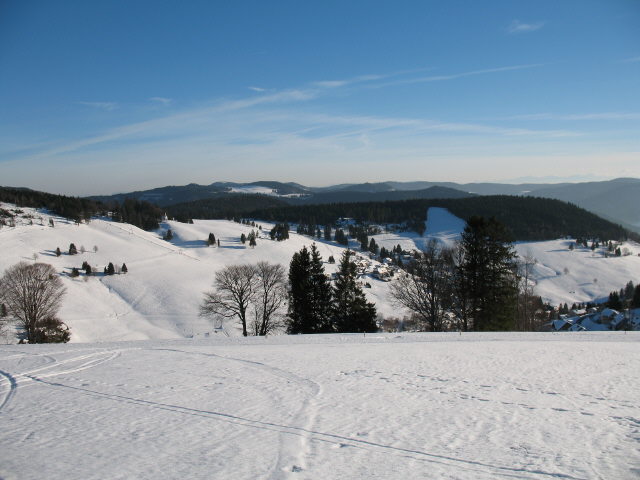 Blick nach Norden über Parkplatz und  Radschert zu den Höhen es Stübenwasen am 10.1.2006 Blick vom Radschert nach Osten am 9.1.2006 Blick über Muggenbrunn nach Osten zum Radschert (oben links) am 9.1.2006