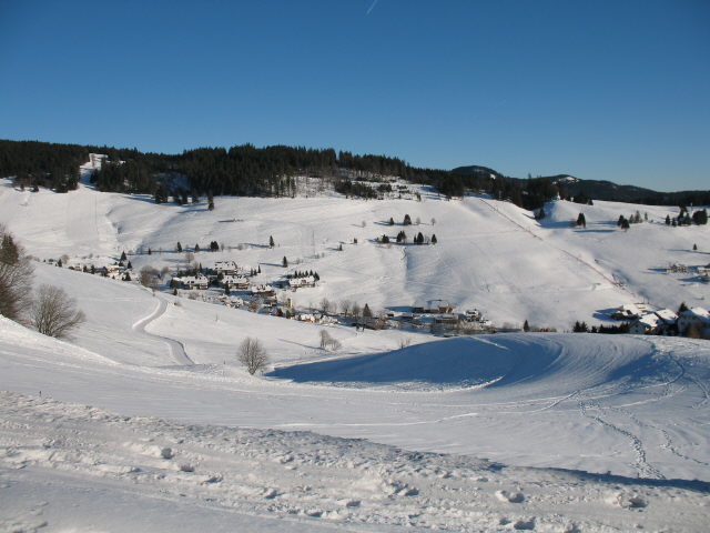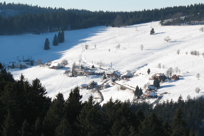 Blick nach Norden über Todtnauberg hoch zum Stübenwasen am 4.1.2006 - rechts Scheuermattkopflift