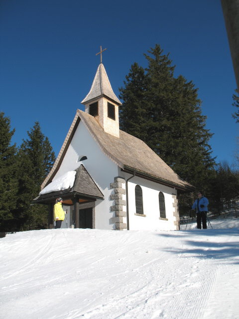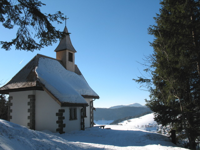 Blick von der Kapelle nach Westen zum Belchen am 30.1.2006 um 14 Uhr Blick vom Radschert nach Süden zur Kapelle (Mitte) bis zu den Alpen am 30.1.2006 Blick nach Norden über Todtnauberg hoch zur Fatima-Kapelle (rechts oben) am 24.8.2008