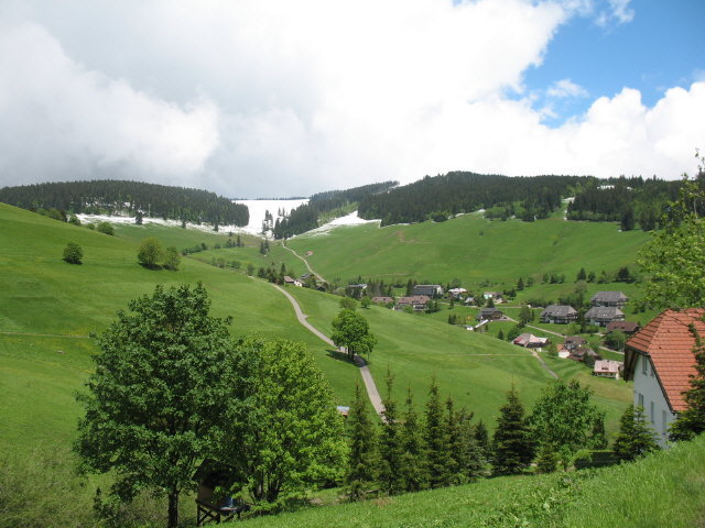 Blick nach Norden über Todtnauberg hoch zum Stübenwasen (immer noch im Schnee) am 2.6.2006