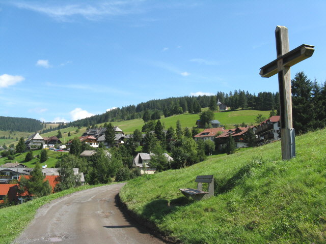 Das Kreuz hoch oben auf dem Radschert oberhalb von Todtnauberg ist ein Hinweis für den pilgernden Menschen: der Weg ist schon das Ziel. Es wurde 1988 zum Gedenken an die Jakobuspilger nach Santiago de Compostella errichtet.