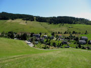 Blick vom Radschert nach Südwesten in Richtung Skischullift Blick nach Norden zur Jugendherberge - mehr Blick vom Radschert nach Süden zur Kapelle (Mitte) bis zu den Alpen am 30.1.2006