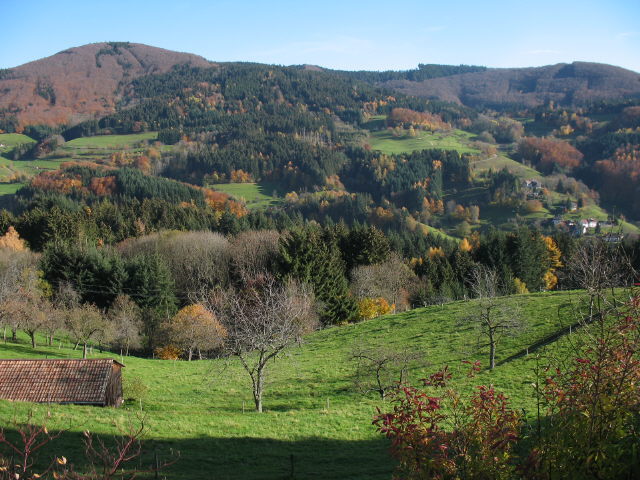 Blick vom Lindenbückle nach Südosten über Vogelbach zum Burgberg (rechts) a, 16.11.2006 Blick nach Süden vom Friedhof Vogelbach zum Burgberg am 16.11.2006
