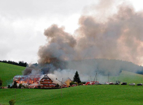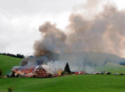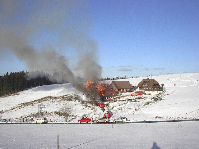 Unverletzt hat die Familie Böhringer vom Facklerhof in Waldau am 29.12.2003 den Brand ihres Anwesens überstanden. An Rauchgas erstickt sind dagegen die 13 Rinder, die im Stall standen. Noch unklar ist die Ursache für das Feuer, das nach ersten Ermittlungen in der Küche ausbrach und nach vorläufigen Schätzungen einen Sachschaden von bis zu 400 000 Euro hinterlassen hat: Der Hof liegt in Schutt und Asche. Die Winter-Idylle trog: Während blitzblauer Himmel die Höhen überspannte und am Schneeberg die Skiläufer ihr Vergnügen genossen, wuchs nicht weit davon auf der Anhöhe am Ortsrand westlich der Bundesstraße 500 in Minutenschnelle ein gewaltiger Pilz aus grau-braunem Rauch empor. Die Bewohner selbst hatten gegen 13 Uhr Alarm geschlagen. Die Feuerwehrabteilung Waldau war als erste an Ort und Stelle, konnte aber nur die notwendigsten Vorkehrungen treffen und nicht einmal mehr in den Stall vordringen. Als nach und nach die Verstärkung aus Neustadt, Langenordnach und Rudenberg anrückte, zusammen 66 Männer mit mehreren Löschfahrzeugen und der Drehleiter, hatten sich die Flammen bereits durch das Gebäude gefressen, denn Holz und Heu boten ihnen reichlich Nahrung.