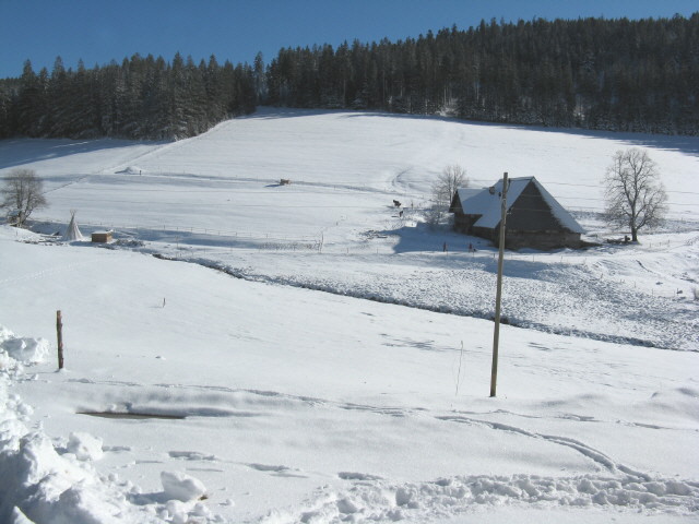 Blick nach Norden zum Bühlhof Ende November 2003 Blick nach Norden zum Bühlhof (rechts) am 1.2.2004 Blick nach Norden zum Bühlhof bei Waldau am 21.2.2004
