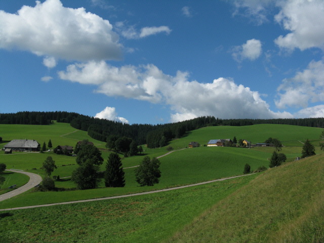 Blick von der B 500 nach Süden über den Stalterhof gen Waldau am 25.8.2008 in der Abendsonne