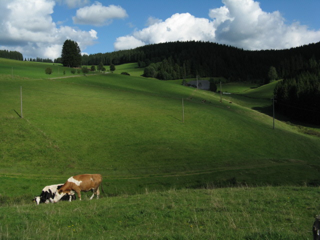 Blick nach Nordosten ins Obertal zum Bühlhof und Griesbenhof am 1.9.2010 Blick nach Norden zum Bühlhof am 1.9.2010 - Zwei glückliche Schweine