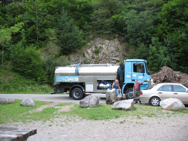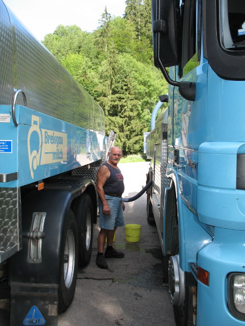 durchs kleine Wiesental angefahren - Schichtwechsel: Milch vom Laster in den