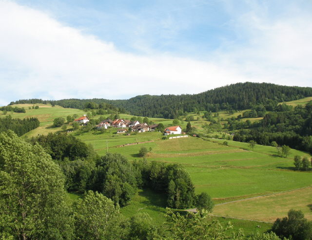 Dann gehts durch den Wald nach Schlechtbach: Ein Hof (10) gegenüber dem Gasthaus