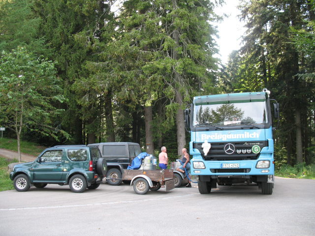 Anhänger pumpen, der Kollege fährt mit Saier's Pkw nach Oberried zurück und wir