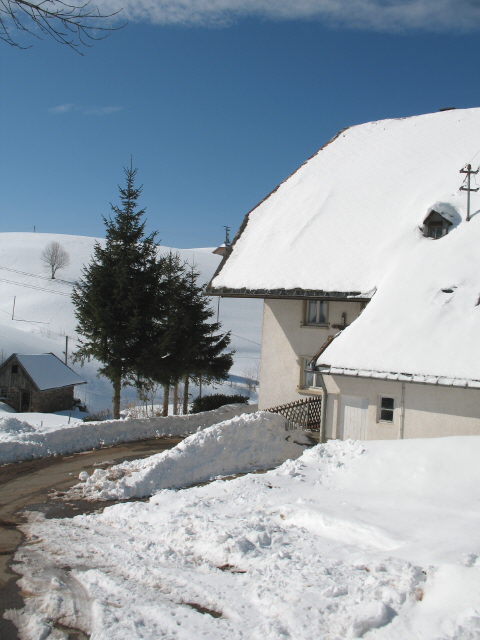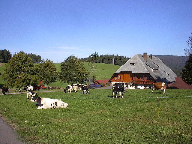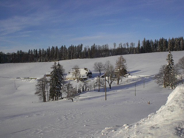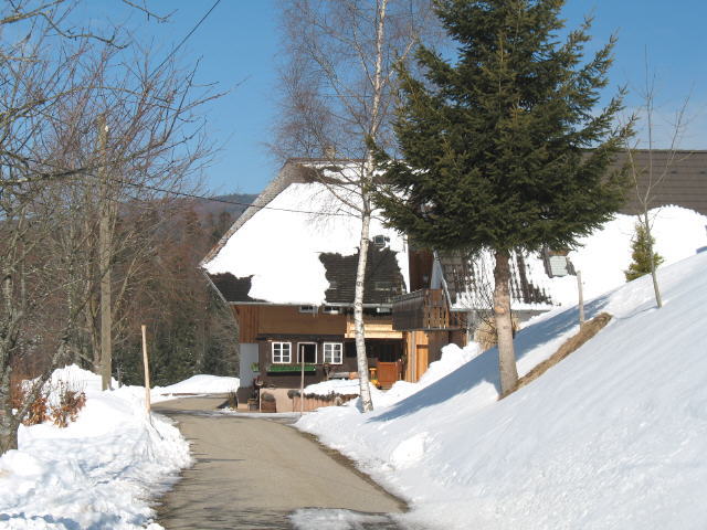 Der Hof liegt auf einem Bergrücken mit freiem Blick nach Nordwesten in den Willmendobel bzw. zum Sägendobel und nach Süden auf das Feldbergmassiv und St.Peter. Neuerbauter Hof mit Vollerwerbs-Landwirtschaft und einer Ferienwohnung, die eben rechts der Scheunenzufahrt erreichbar ist: Küche und Wohnzimmer eben und zwei Schlafzimmer eine Treppe hoch (wie eine Maisonette). Komfort mit TV/Tel, Wasch- und Spülmaschine. Viele Tiere
