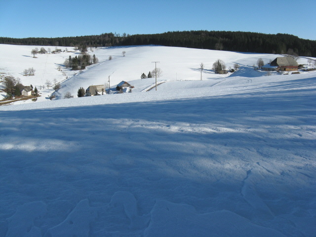Blick von der Scheuer im obenen Schmittenbach von St. Peter nach Osten über das Oberibental nach St. Märgen am 1.2.2004 Blick über den Vorderen Willmen nach Osten bis St. Märgen am 12.1.2009