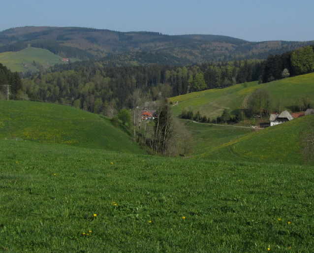 Blick vom Vorderen zu Amandenhof, Christenhermannhof und Haldenlorenz (von links) am 11.5.2008 Blick vom Vorderen Willmen nach Nordwesten über den Willmendobel mit Haldenlorenz  zum Kandelberg und Kandel am 12.1.2009