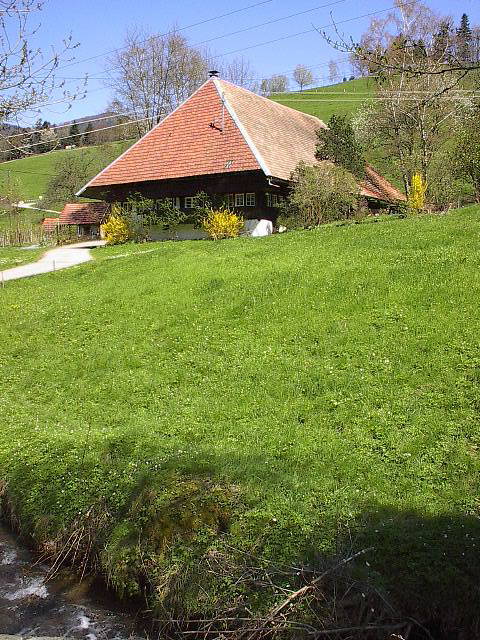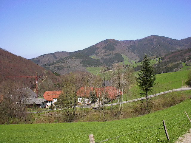 Blick über den Yachbach nach Nordosten zum alten Singlerhof am 23.4.2005