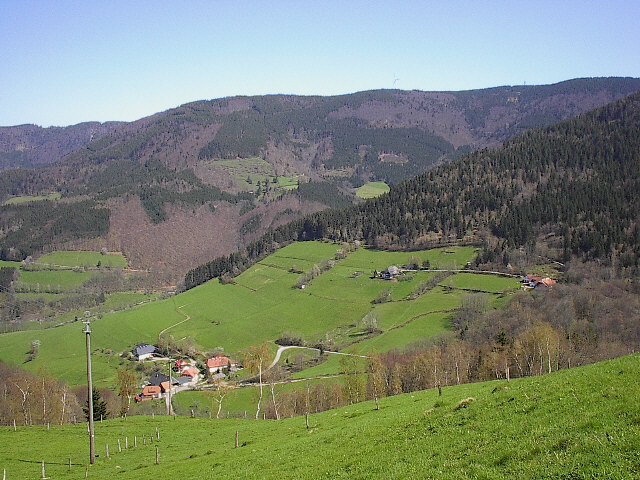 Blick vom Belchhäusle nach Süden zum Fischergrundhof und hoch zum Rohrhardsberg