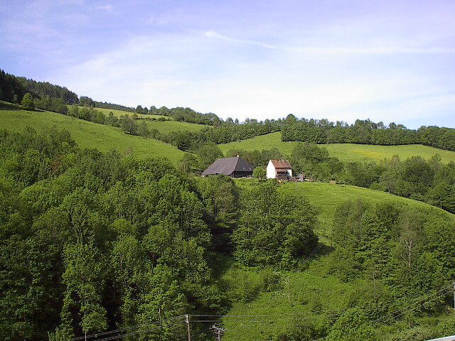 Blick über den Zastlerbach nach Süden zum Burghardshof am 27.5.2005
