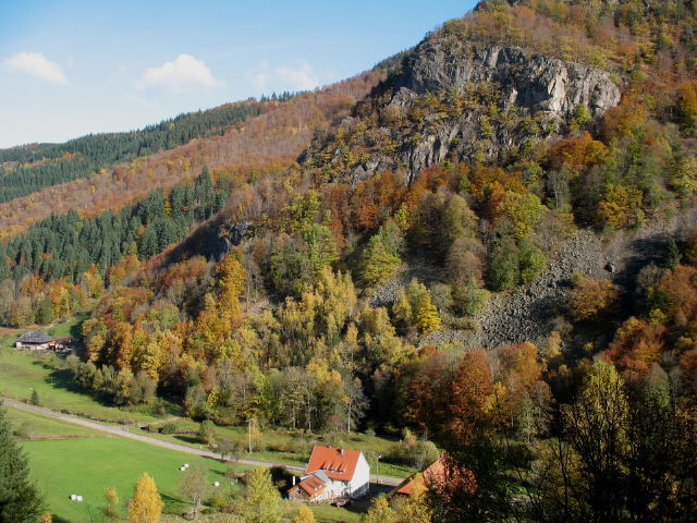 Blick nach Nordwesten zur Mühle beim Gassenbauernhof unterm Scheibenfelsen am 25.8.2010 Blick nach Nordwesten zur Mühle beim Gassenbauernhof am 25.8.2010