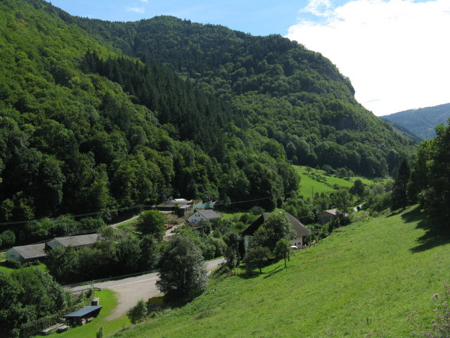 < Blick nach Norden über den Zastlerbach zum Glaserhansenhof am 25.8.2010 Blick nach Norden